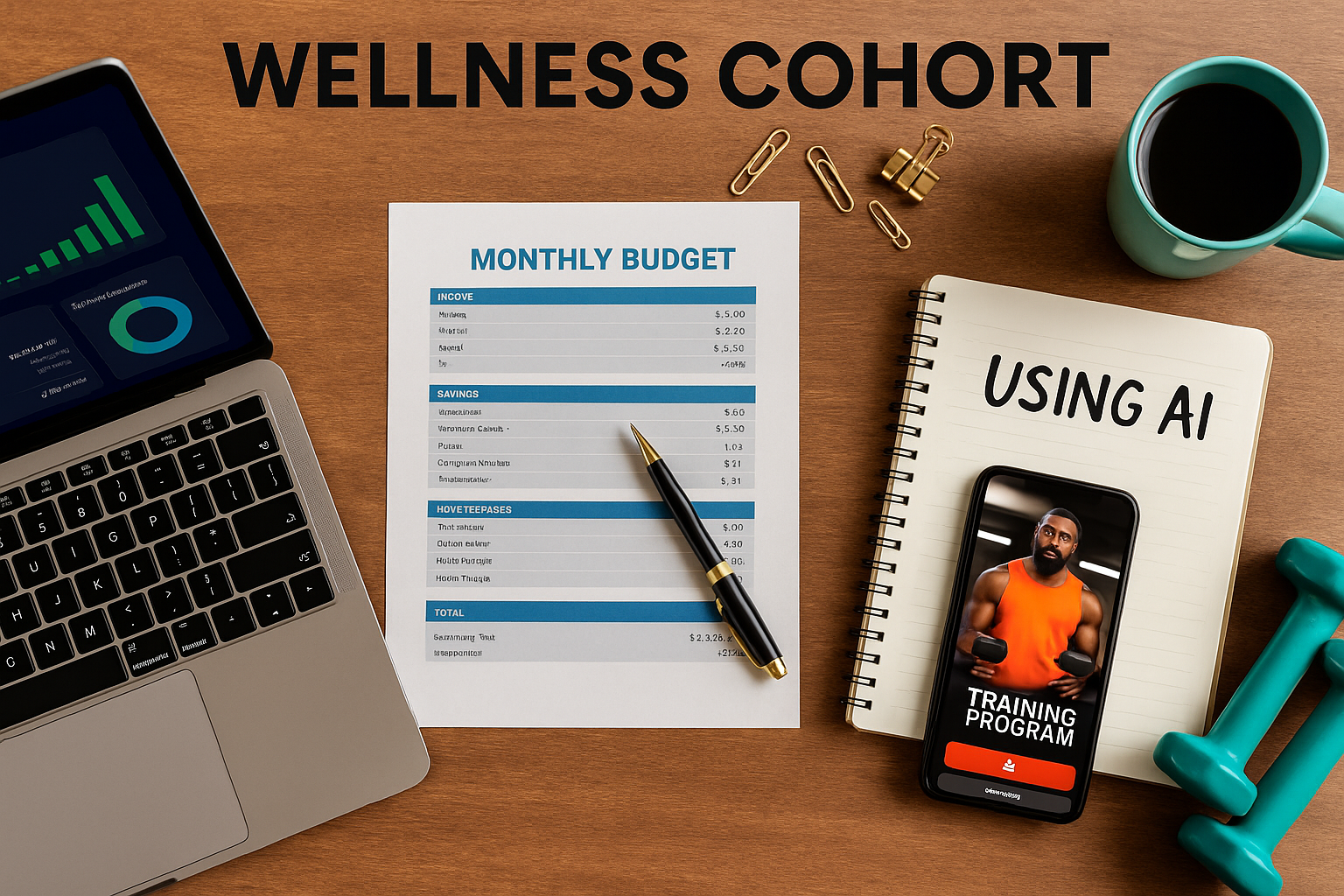 The Wellness Cohort is a free 5-week community experience designed to help you take control of your fitness, nutrition, finances, and daily habits — using practical systems and AI tools that improve real-life results.